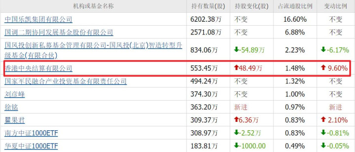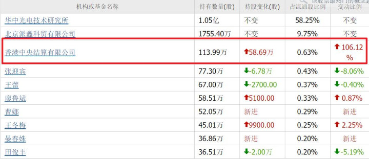 北向新进294万股,位列第七大流通股东。