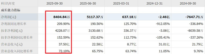 公司今年三季度,净利润大增209%,扣非主营利润大增152%。